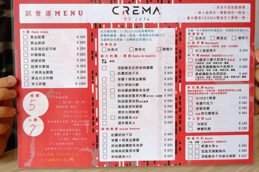 【CREMA 93 CAFE】不只有飲料,還有咖啡、義大利麵、燉飯、鬆餅等等,餐點還蠻多樣化的
