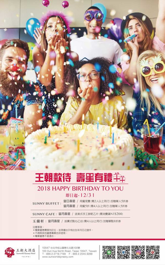 當日壽星用餐免費(需2人以上同行),加贈單人5折券