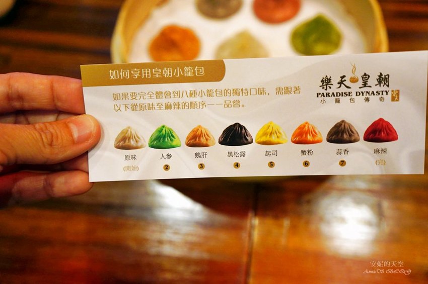 樂天皇朝還很用心的製作八色小籠包小卡給大家參考,建議要按照順序品嘗為佳。