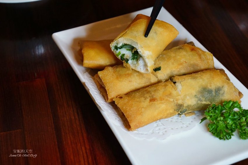 黃魚的口感細緻滑嫩,這是樂天皇朝首創的創意料理,將黃魚果進春捲裡,金黃的外皮相當酥脆,裡頭還有飽滿的黃魚餡料,酥炸口感很深得我心。