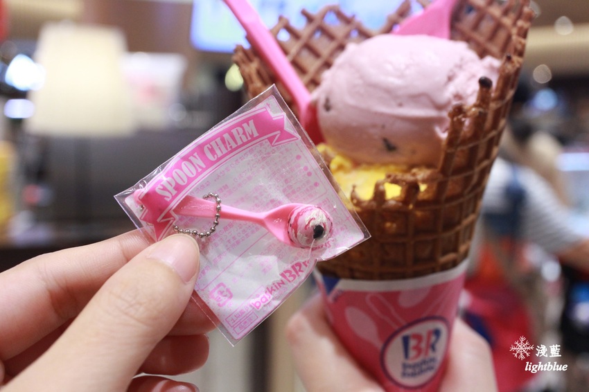 開幕前四日(10/18-10/21)前310名消費者,會贈送31 ICE CREAM獨家吊飾,有綠色和這款莓果色可以選,這款比較受歡迎。