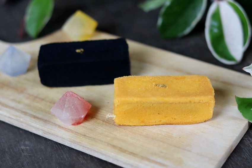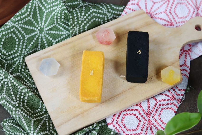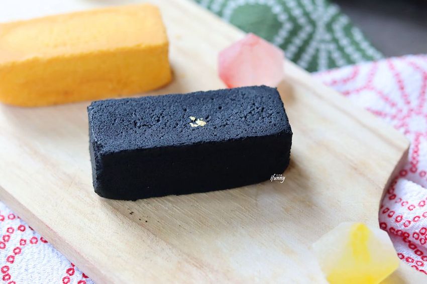 黑色的鳳梨酥第一次見到吧!雖然加入竹炭造成黑嚕嚕的模樣,但令人感受到一種沈穩的氣息,加以金箔的裝飾,更顯出一種溫柔的力量。