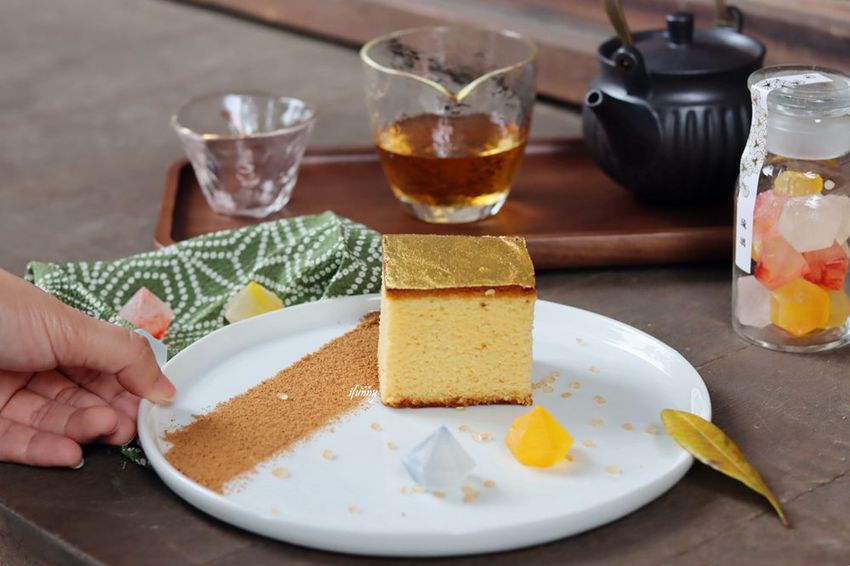 將一般常當作彌月禮的蜂蜜蛋糕,沿襲日式正統手法加上華麗的金箔,還有精緻的包裝,送禮自用都相當合宜。