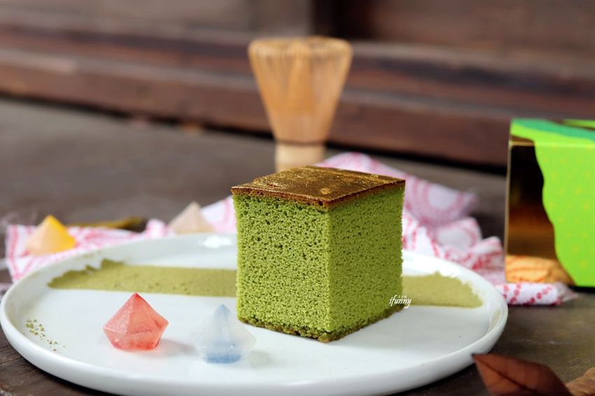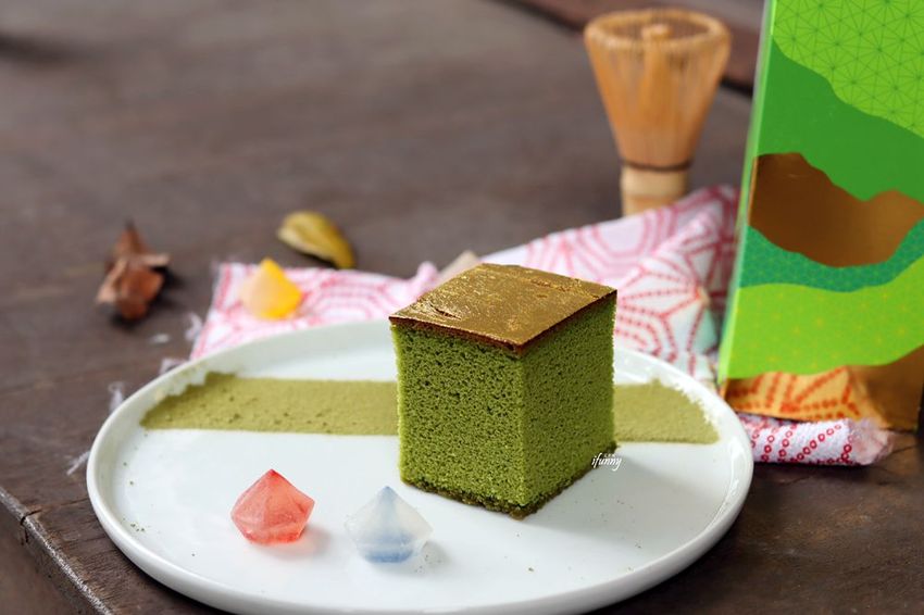 在金黃香濃的蜂蜜蛋糕中,注入溫潤厚實的抹茶抹醬及抹茶粉。