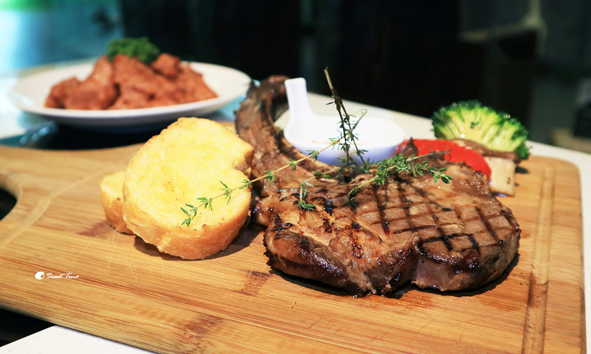 戰斧豬排 - 一隻豬裡面只能取得四到六隻,所以深受不少饕客喜愛,連我也不例外呢,這兒的戰斧豬排沒有太多的調味,以原始的風味呈現,沾上一旁附的紅酒醬就能趁托出戰斧豬排的美味。