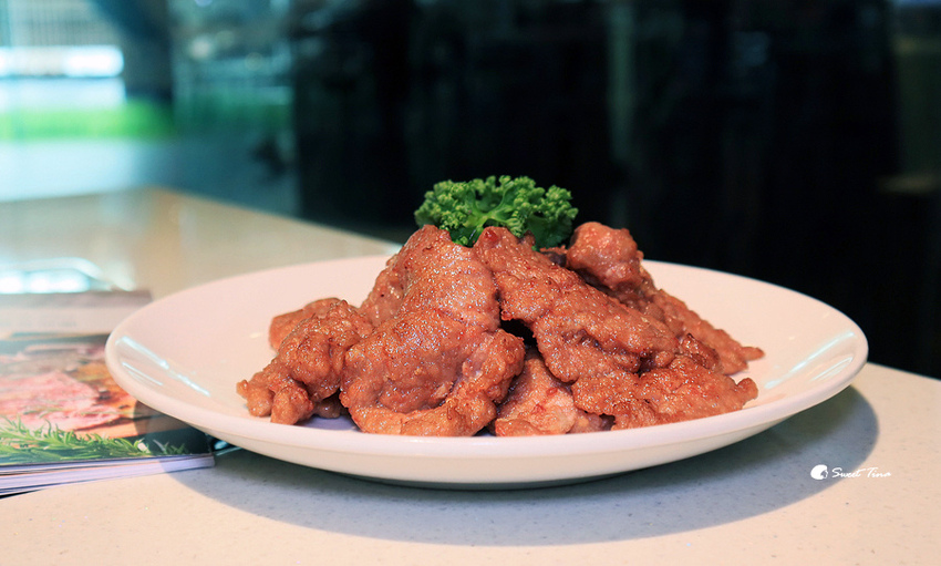 紅糟小里肌 - 每塊小里肌(俗稱腰內肉/豬菲力)都平均的附著紅糟,所以每一口都能感受到紅糟的香氣,是道養生及美味兼具的料理,長輩來這兒用餐一定會超喜歡的。