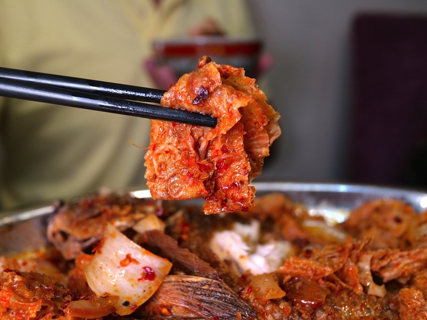 《重慶麻辣烤魚》有著偏麻的辣感,上方的豆皮超好吃、好有辣味~