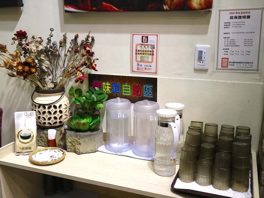 門口旁是自助區,可以自己取用飲用水&調味料:
