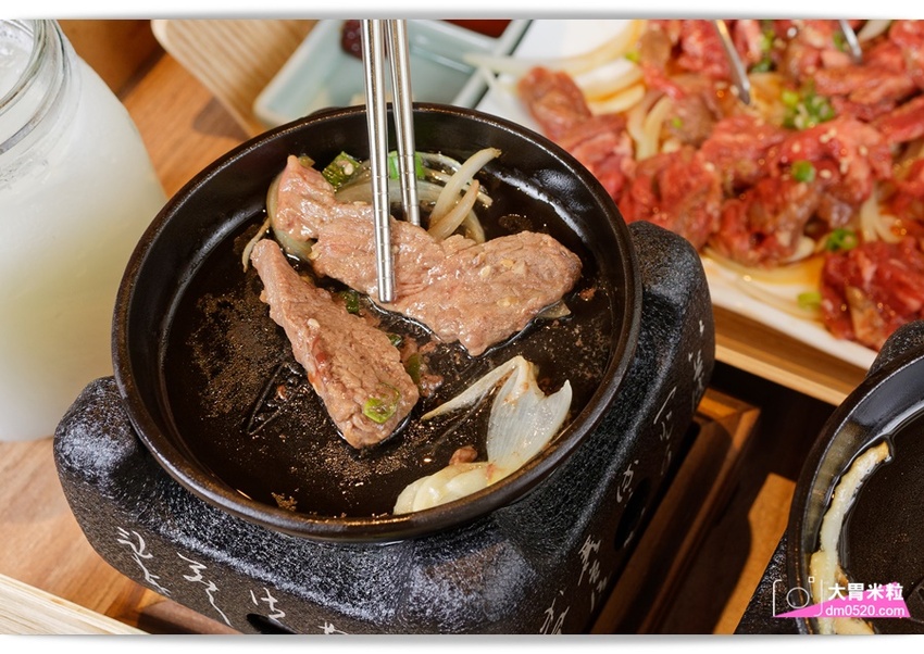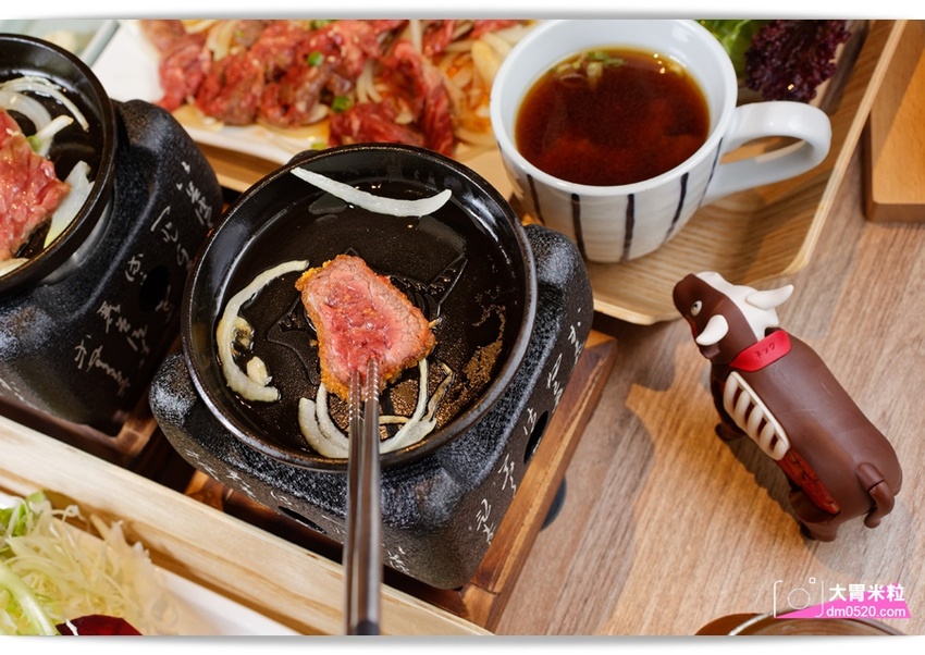 品嚐時,先將烤盤預熱後,再將肉片放上迷你烤盤,