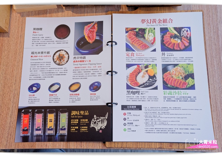 一次就能吃到虎次兩大招牌食材!定食套餐無法更換丼飯/黑咖哩飯/沙拉,