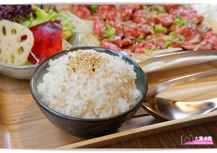 越光麥片飯,因為加入大麥,吃起來帶點顆粒口感,粒粒分明配肉好好吃!