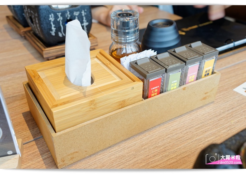 餐桌擺上各種繽紛沾醬:虎次椒鹽、玫瑰岩鹽、芥末海鹽、七味辣粉、