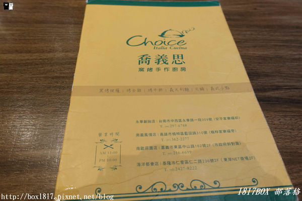 喬義思choice窯烤手作廚房嘉義莊園店菜單