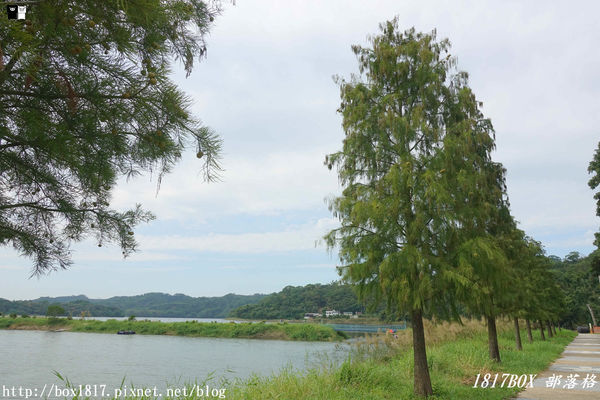 明德水庫南岸苗16線通往海棠島的「明湖蘇堤」,兩旁波光粼粼,水岸楊柳迎風搖曳,落羽松是季節限定風景,