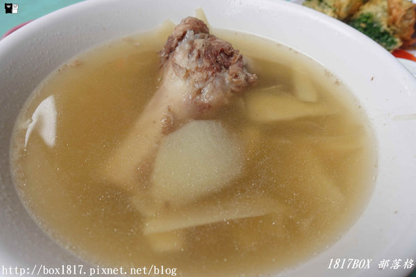 裡面有二隻大骨,竹筍,豬血,筍子吃起來清爽可口,湯品濃郁,口味家常,