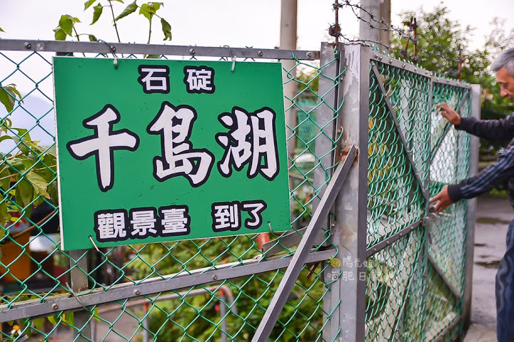 離開土虱頭後,回到小路上繼續往下走,再往前開一點,會遇到右手邊有叉路,往叉路開下去,就會看到這個招牌~石碇千島湖觀景台