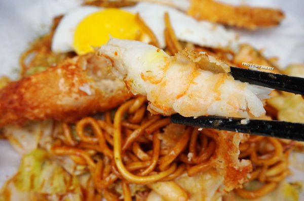 只要一口麵搭配一口肉質飽滿的大炸蝦,