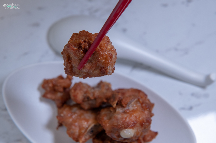 這道一上桌,已吃過的朋友馬上強力推薦,要大家趕緊趁熱吃,直說這是他吃過最好吃的炸雞。利用班蘭葉獨特甜美的香氣去提味,雞皮處理的薄而酥脆,咬下酥脆的外皮,驚訝的發現~鮮美的肉汁都鎖在裡面,火侯完美,柔嫩多汁,肉質鮮甜,非常多層次的口感卻一點也不油膩,無怪乎朋友一直推薦,還說這道菜色直接單獨推出,有機會跟市面上的炸雞店一爭高下,對此凌雲深表贊同。