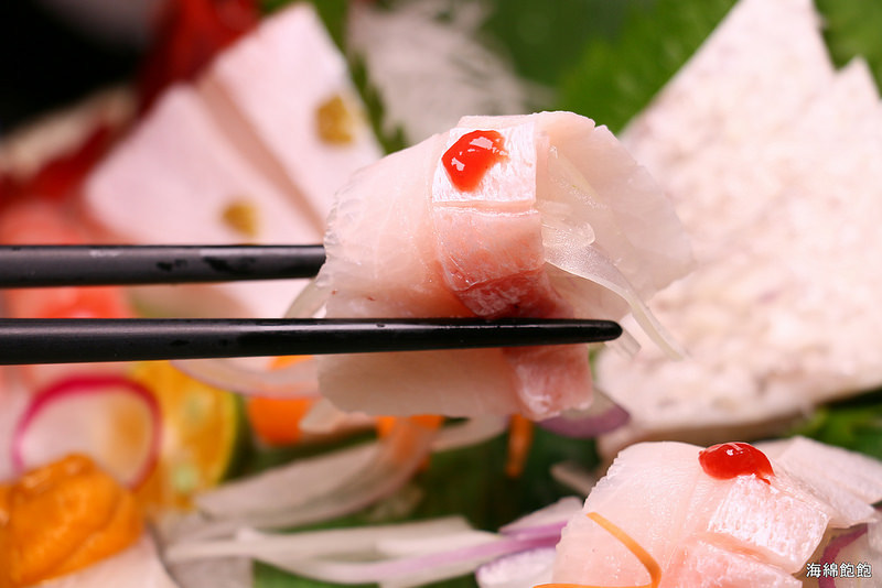 海鱺薄切佐梅果醬,海鱺的顏色超漂亮!