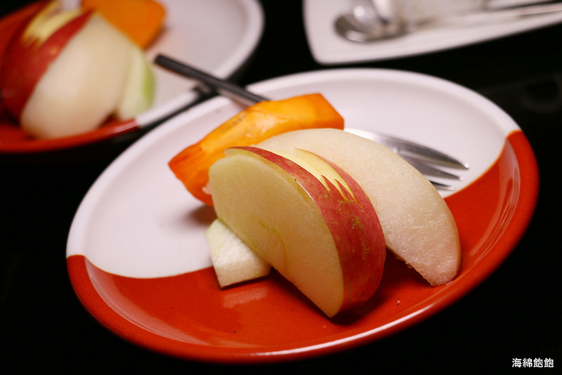 餐後水果,這天是蘋果、水梨、芭樂及柿子