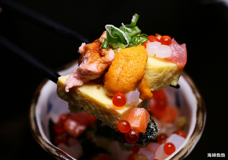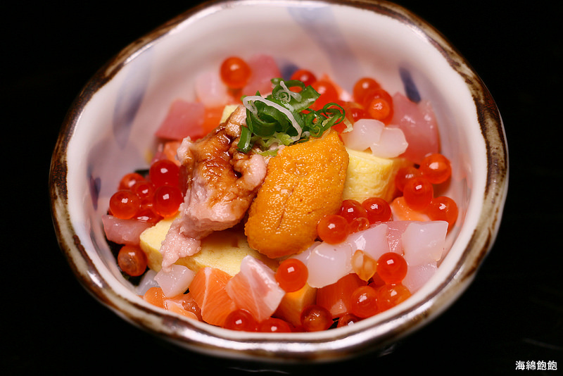 鮪魚泥、鮭魚塊、鮭魚卵、花枝、海膽、玉子燒