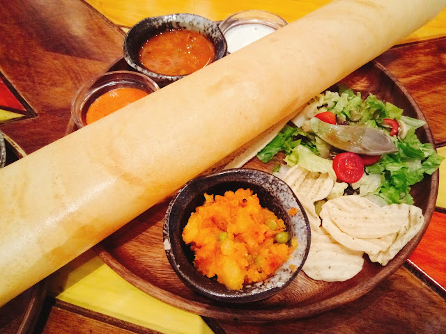 薄餅有點類似偏脆可麗餅外皮,沾著馬鈴薯咖哩,加上一些酸辣醬或椰子醬享用還不錯,但這道份量偏少,CP值不高。