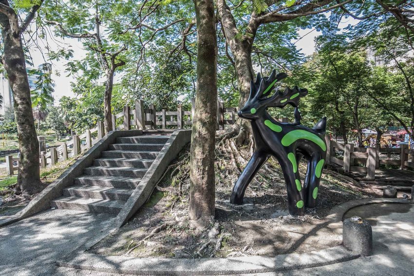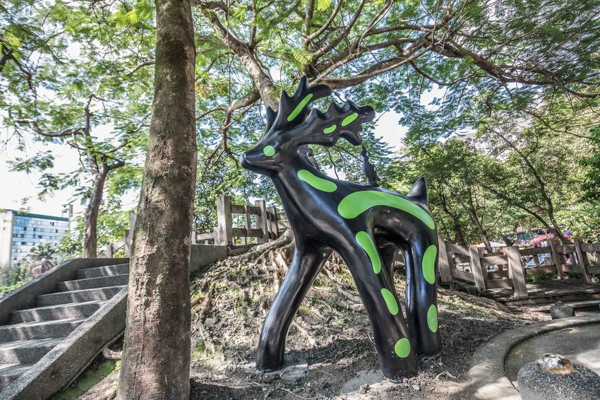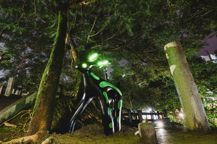 光鹿座落在宜蘭最古老的溜滑梯上,從前蘭陽平原上有許多鹿群奔跑著,隨著時代的變遷,城市的開發,鹿群的棲地也逐漸消逝,光鹿的位置是中山公園內最幽暗的地方,希望藉由光鹿身上的光芒來照亮這陰暗的角落,也喚起大家對於大自然保育的重要性