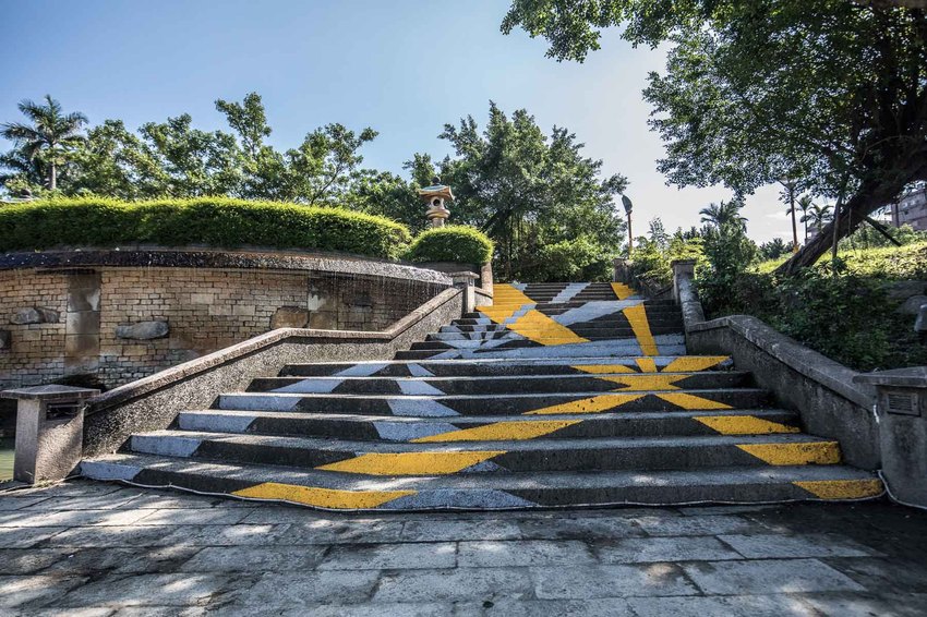 在中山公園正中央的樓梯,彩繪出如同音波傳遞的圖樣,與青鑼創意宗旨相呼應,也讓古老具歷史感的老舊石階梯披上時尚的文創面紗