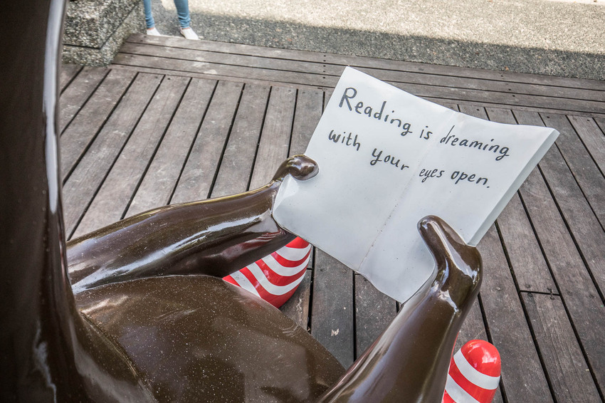 兒童總是有著許多天馬行空的幻想,在圖書館門口的瑞叮先生是隻愛讀書的咖啡色小馬,穿著紅白相間的襪子,坐在門口吸引著孩子一同與瑞叮先生讀書,在書中那些奇妙的幻想,通通化作圖書館牆上的彩繪,勾勒出孩童們內心中的幻想世界,快跟著瑞叮先生一起暢遊書中的奇妙幻境吧
