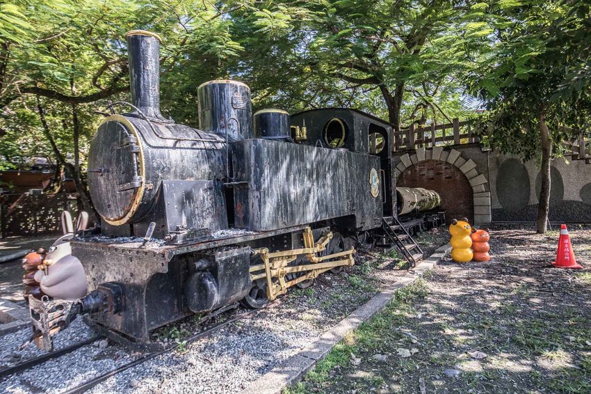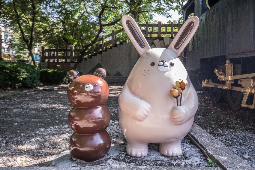 奶油兔&麵包君在中山公園裡還真悠閒呢,到處都可以看見牠們的蹤跡,公園裡的老火車頭,奶油兔&麵包君也在這裡休息呢