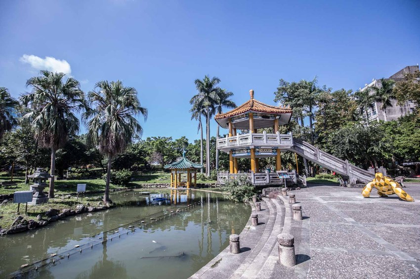 這次中山公園的翻新還有一個亮點就是將園區內所有的柱面、燈柱通通換上亮麗的金,一改過往古板守舊的紅色,整體的色調搭配,即使是古意盎然的涼亭,也換上活潑年輕的新色彩呢