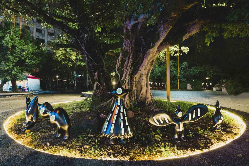 黑青結合了時下最夯的AR實境,只要搭配AR的DM,黑青大樹下便會與您熱情互動唷,到了晚上黑青大樹下身上的青色圖案也會發光呢,超酷!