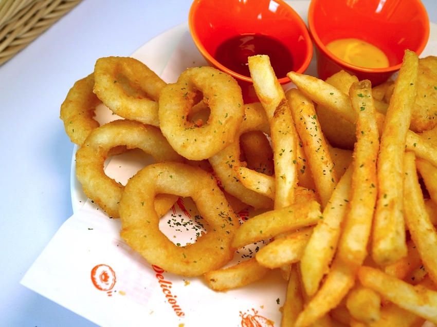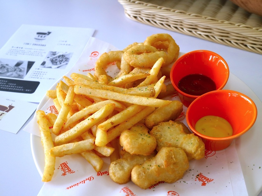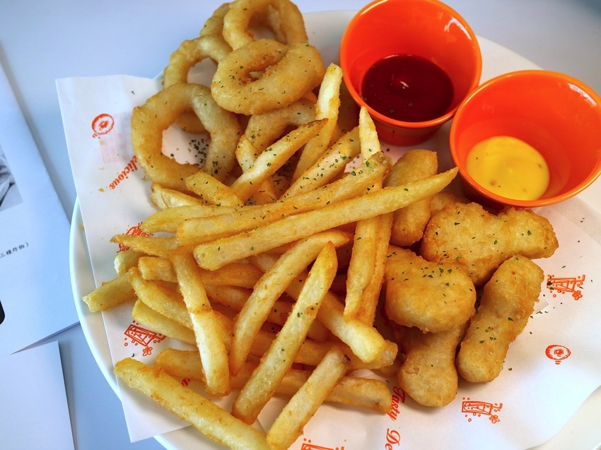 《炸物拼盤》裡,含:美國脆薯+酥脆雞塊+洋蔥圈