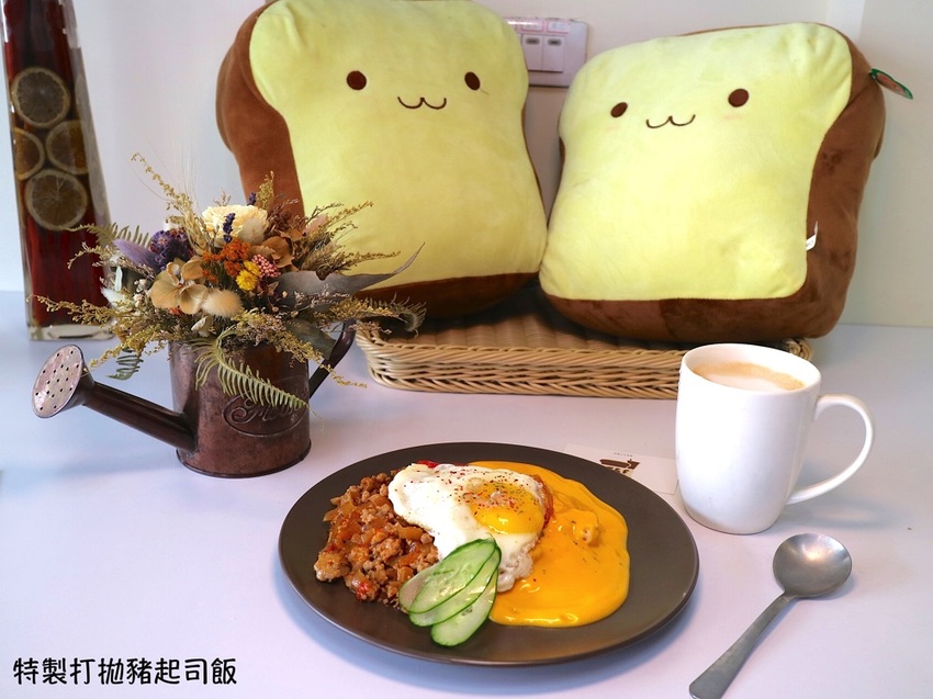 6.八字眉芯芯:【t&f手作吐司–安平店】~創意熱壓吐司專賣店|每日限量30碗海鮮鍋燒|網美最愛夢幻乾燥花空間