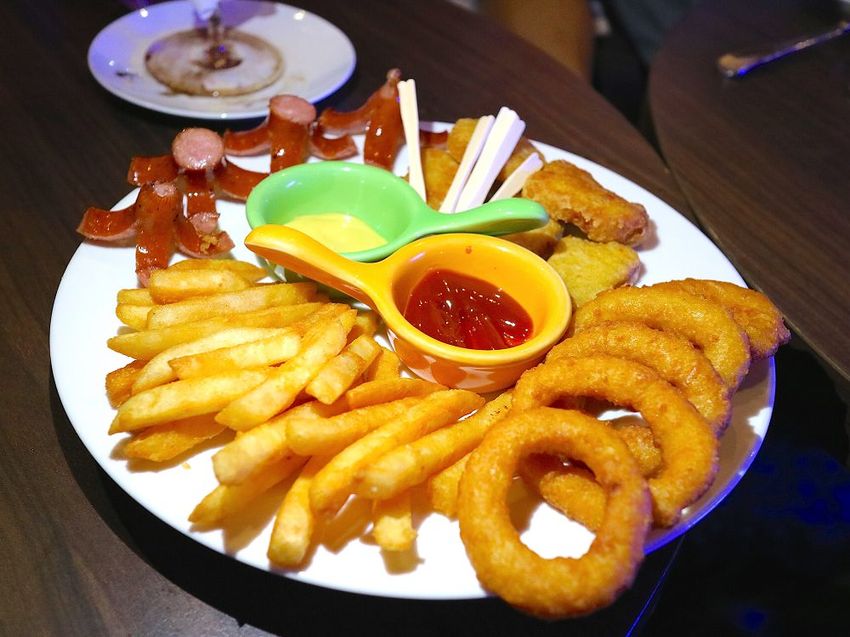 《歡樂派對拼盤 $350》裡面有薯條/脆腸/雞塊/洋蔥圈,炸得很好!點一盤,大家一起共享,超美味,很歡樂!