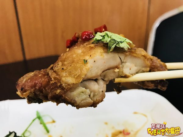 使用雞腿肉,炸的金黃酥脆,光這一塊,再上面淋上一小匙泰式辣椒醬就可以配完一碗飯。
