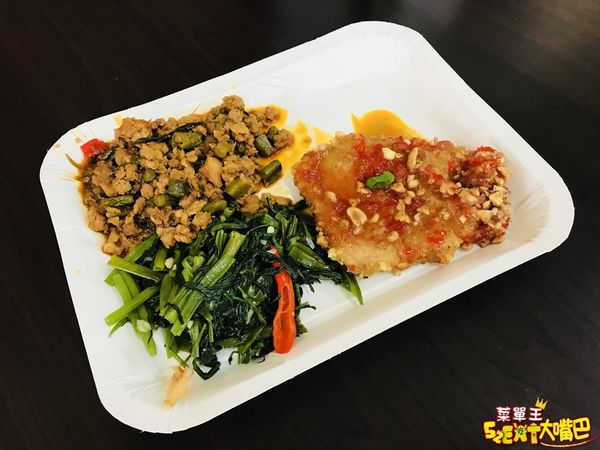 有二樣主菜:泰式豬排及打拋豬及一樣清菜:蝦醬空心菜。