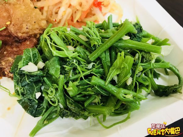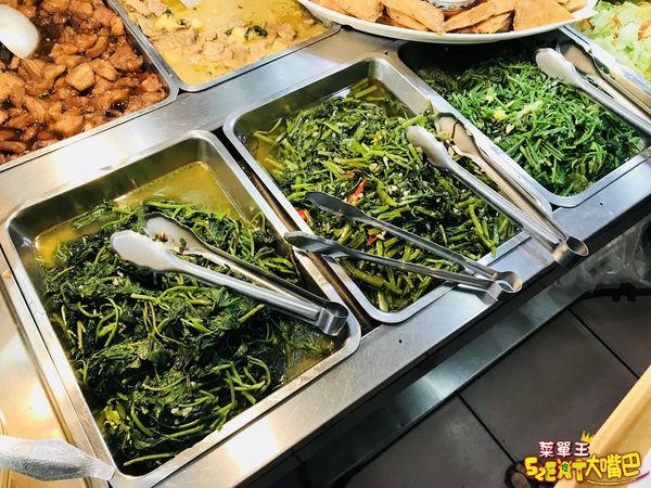蝦醬空心菜、蒜炒龍鬚菜、地瓜葉,看似平凡,但吃起來味道都與一般自助餐廳提供的口味大不相同,多了一點泰式的風味。