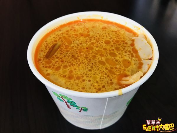 ▼泰式冬陰功湯的配料有滿滿的秀珍菇及雞肉。