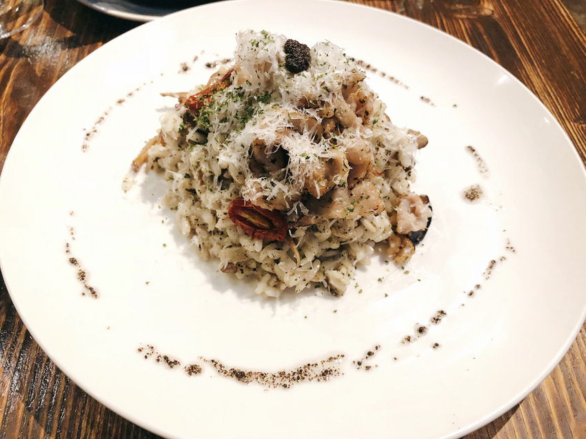 「松露松阪豬燉飯」 店家招牌菜之一,最上層用松露點綴著,還伴著起司絲以及番茄乾