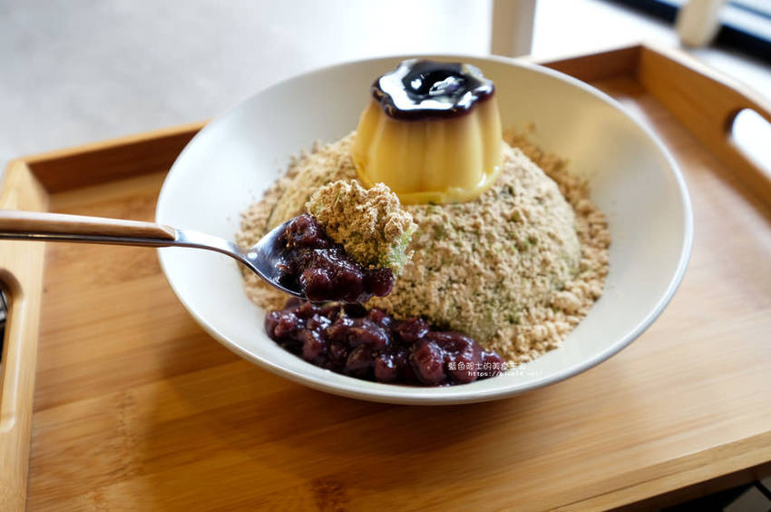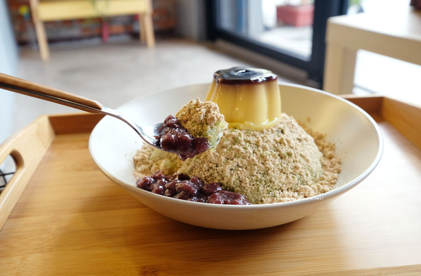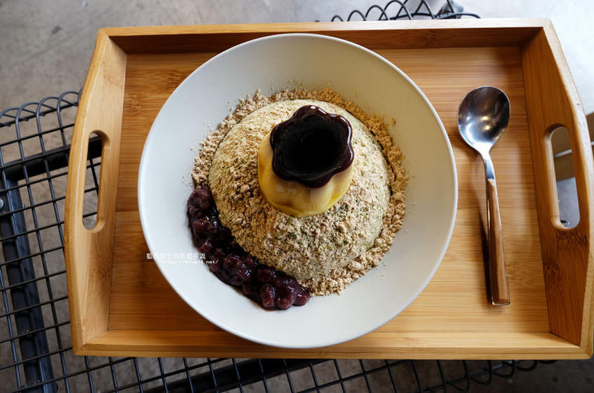 抹茶已經加在剉冰裡面了,再撒上麵茶