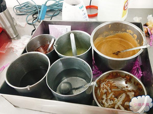 自取佐料區。老闆娘自炒自製辣椒醬,使用成都花椒及泰國朝天椒熬煮,辣的帶勁有滋味。