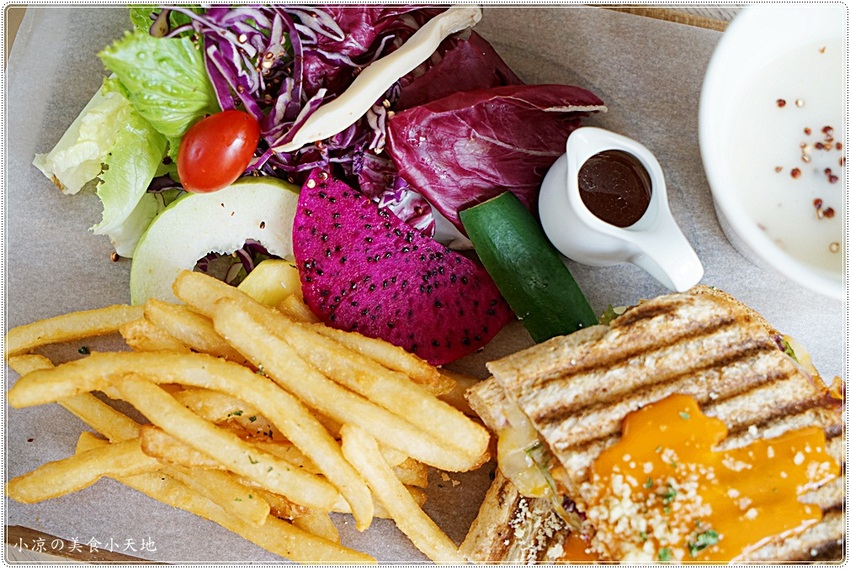 我喜歡這樣的份量與搭配,有著大人小孩都愛的脆薯,生菜水果的豐富度高