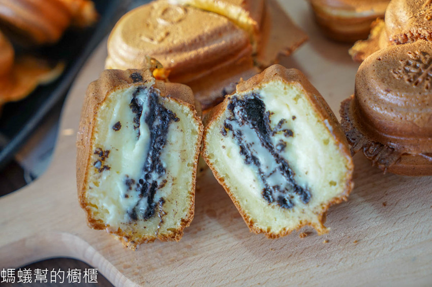牛奶OREO$25。內餡裡填入一整顆OREO,經過模具加熱燒烤,外頭餅乾跟內層奶霜稍微融化,跟牛奶卡士達相融,吃起來口感特別又不會太甜膩,比起一般吃OREO餅乾更好吃也更有趣。