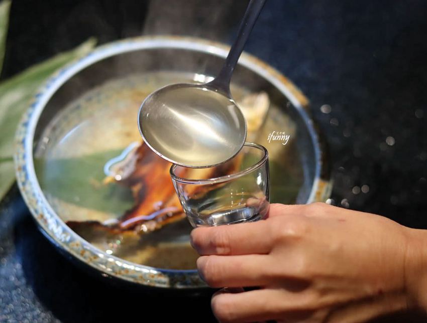 這個酒的份量約三合(540ml),在滾燙的狀態下,改以湯匙盛裝酒到杯子中。