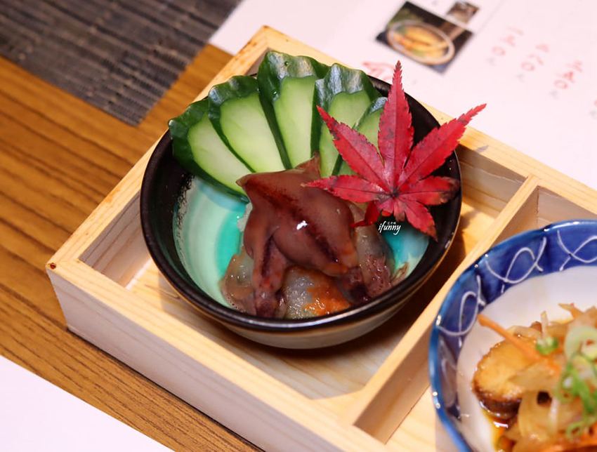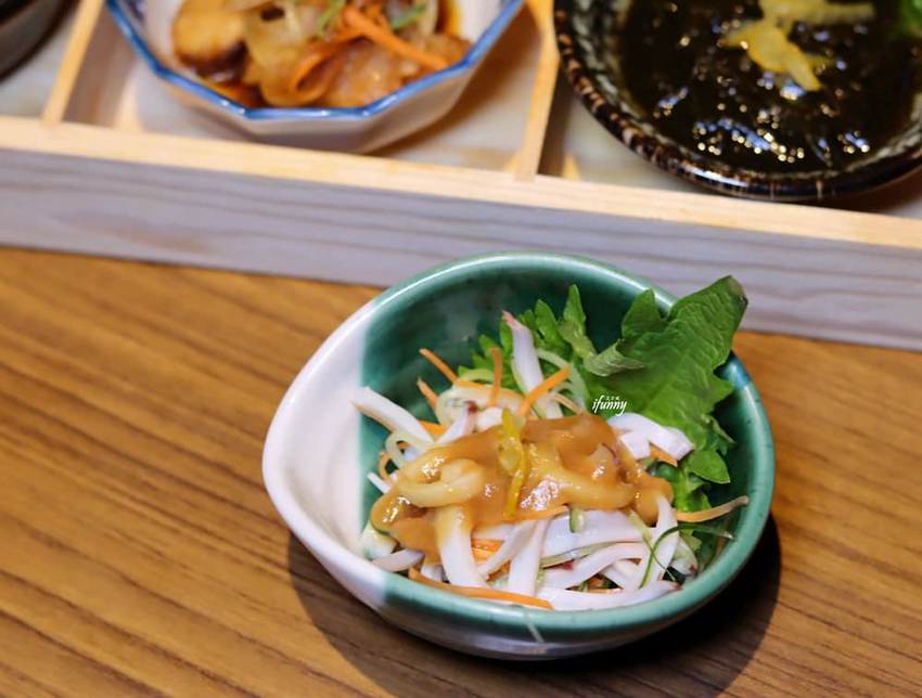 後來又送來了這個涼拌花枝,脆口又帶著嚼勁的花枝,搭以略有鹹甜的味噌,吃來超讚的!