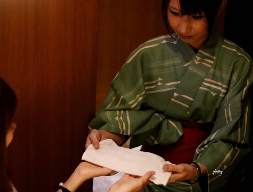 點餐前,日本女孩先拿了冷毛巾給我們擦手,冬天則會是熱毛巾喔!