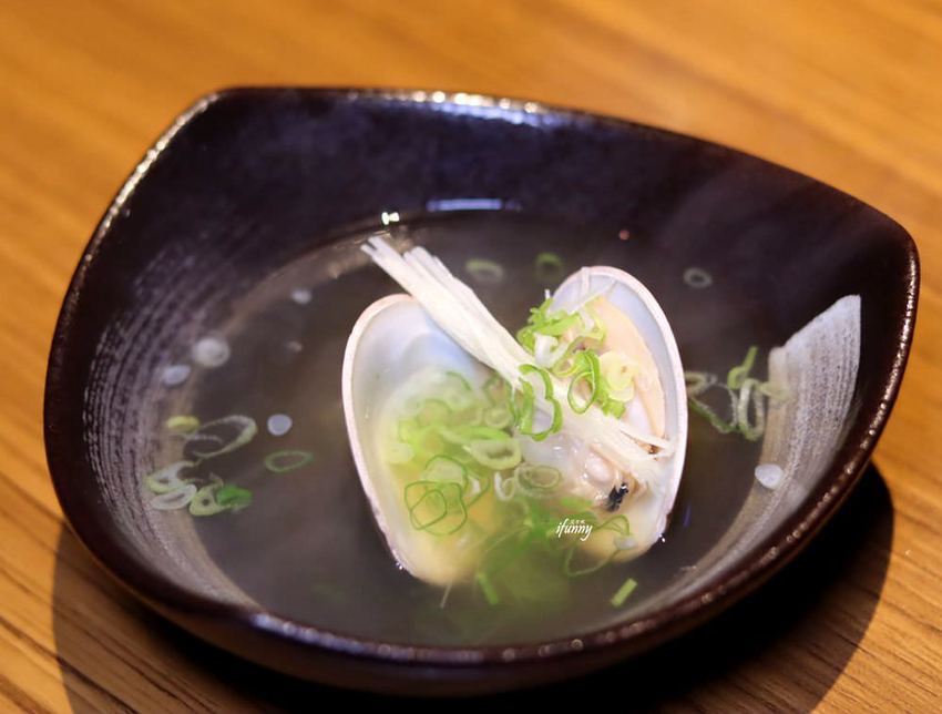 個頭超大的蛤蜊,以清酒蒸煮,不僅鮮味都保留在湯中,大顆飽嘴的蛤蜊新鮮Q脆,和著薑絲及蔥花,及淡雅的酒香,這一喝下,胃都暖了起來。