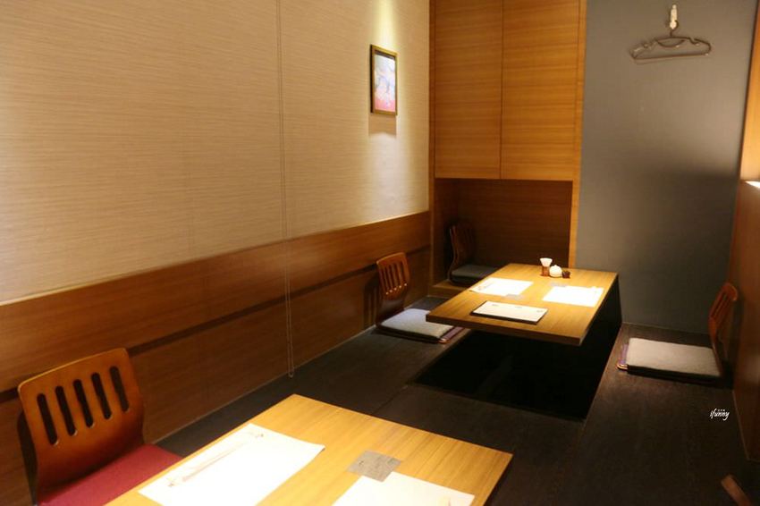 這間包廂就是門口看得到的座位區,採正統和室座位,但有留腳垂下的空間,因此不用擔心需要盤腿而坐。