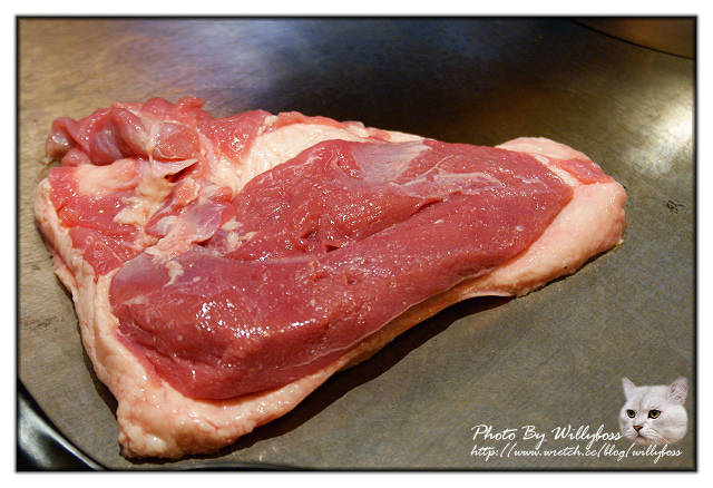 另外一半就是一般的乾煎作法,那個粉紅色的油脂分部看起來相當誘人......